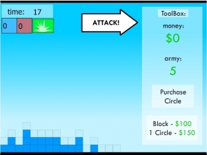 Ваша армия - шары, ваш замок - квадратные блоки. Вам необходимо отстраивать свой замок и покупать шары для атаки вражеского замка. Следите за финансами!